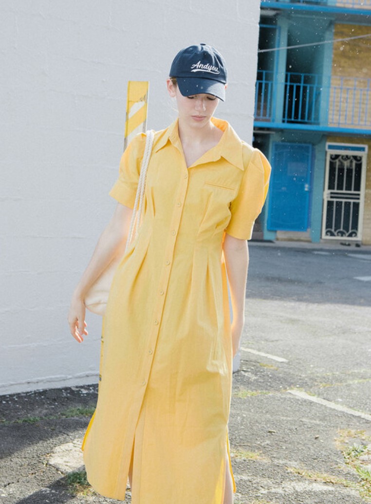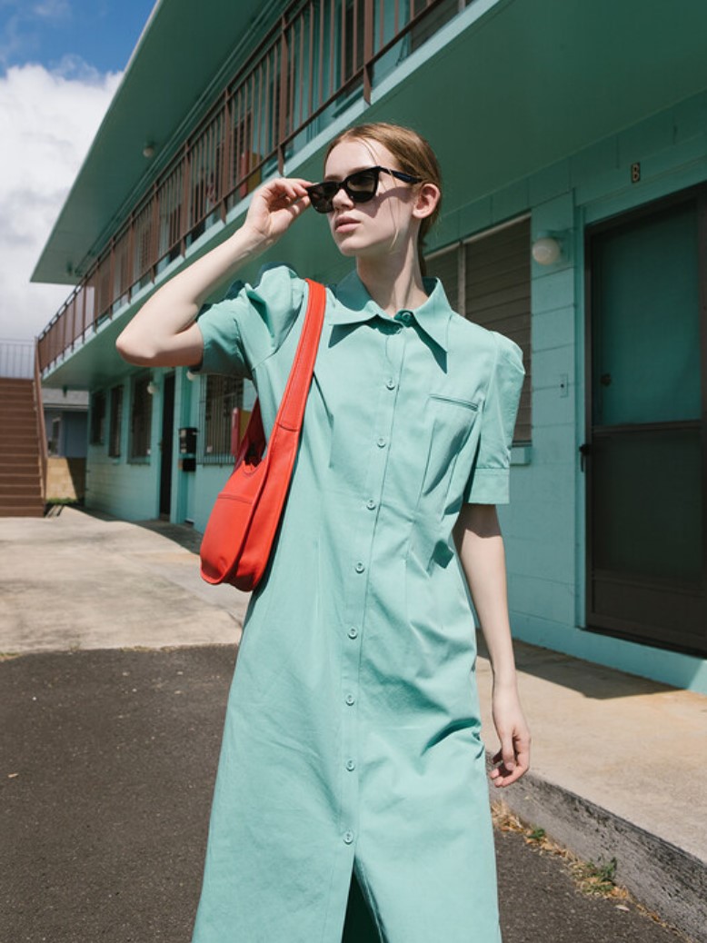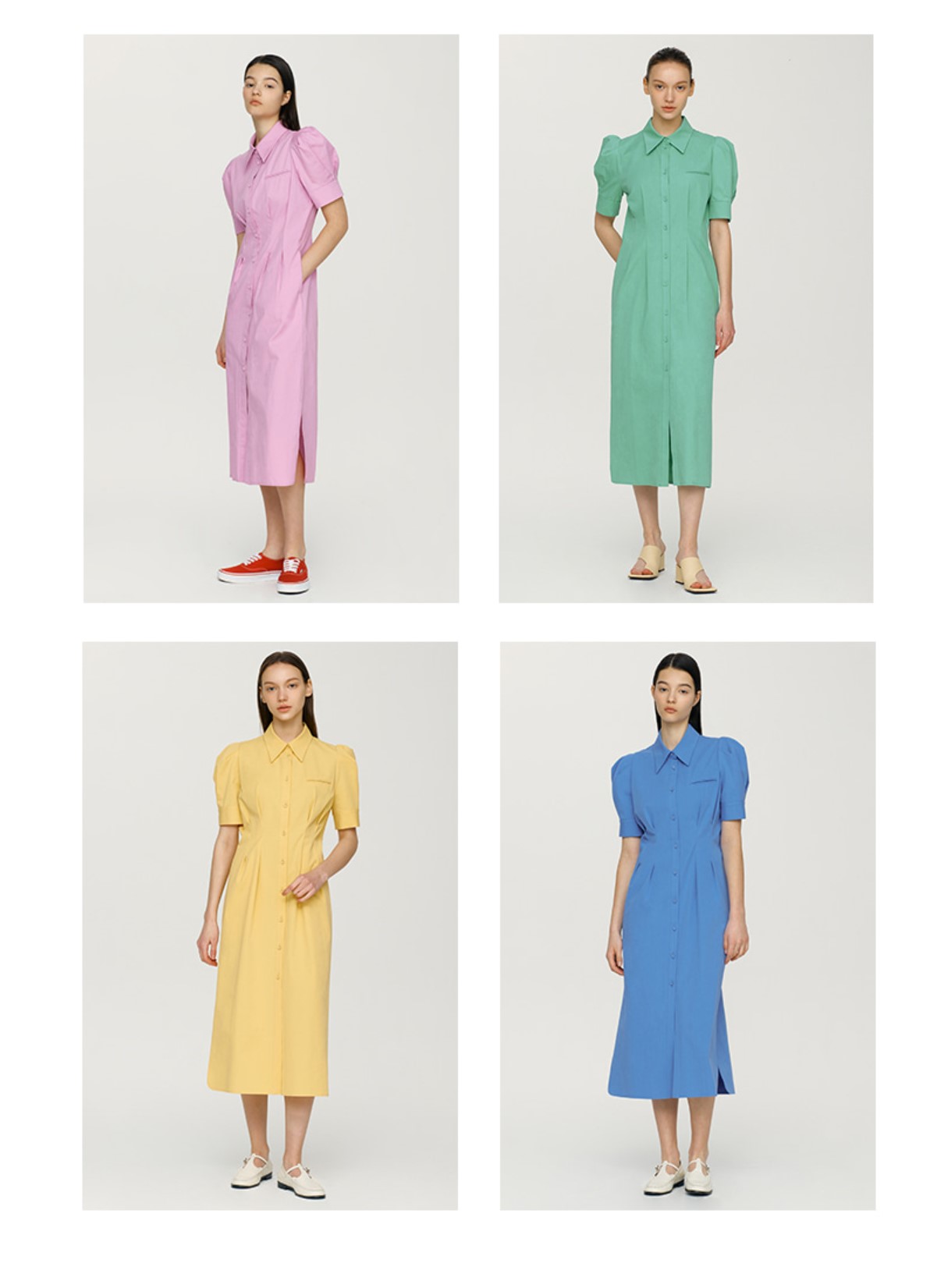 어깨부분은 퍼프가 있어서 사랑스러운 느낌을 주고, 카라가 있어서 셔츠원피스의 원형을 담았다. 퍼프가 과하게 봉긋 올라온 타입이 아니라서 무난하게 누구나 다 잘 어울리는 느낌이다.