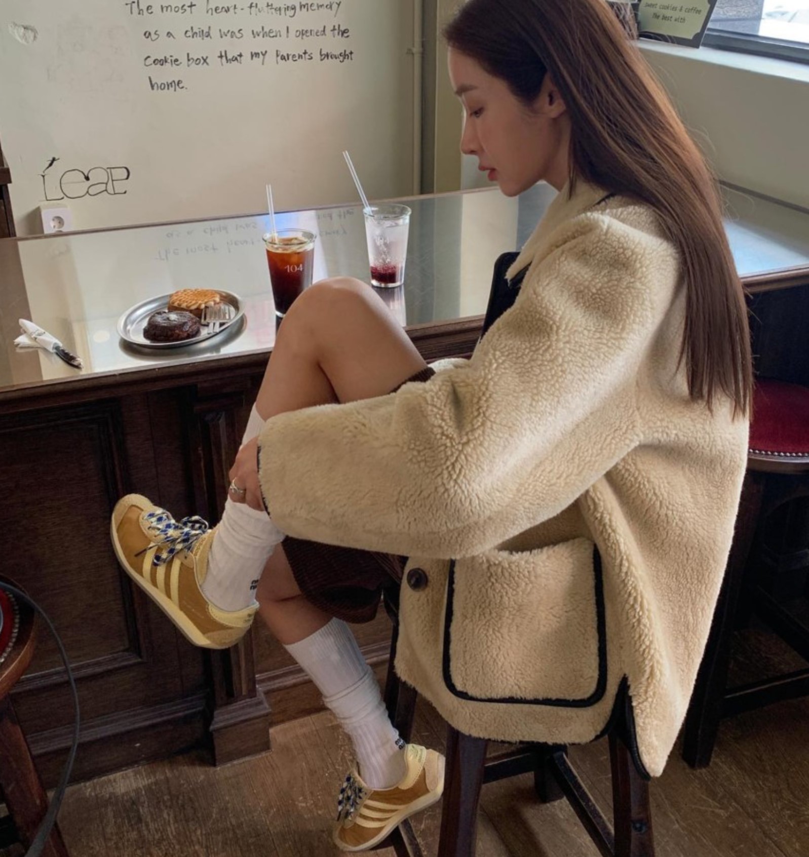 차정원의 삼바 중 머스터드와 브라운에 가까운 삼바를 선택했다. 매치한 코디를 보면 가을과 잘 어울려서 뭔가 더 잘 고른 것 같은 느낌이 가득했다. 앳코너의 리버시블 무스탕과 매치했을 때도 찰떡 같은 느낌을 주었는데, 아무래도 무스탕을 베이지톤으로 선택해 톤이 비슷해서 더 잘 어울렸던 코디로 보였던 것 같다.